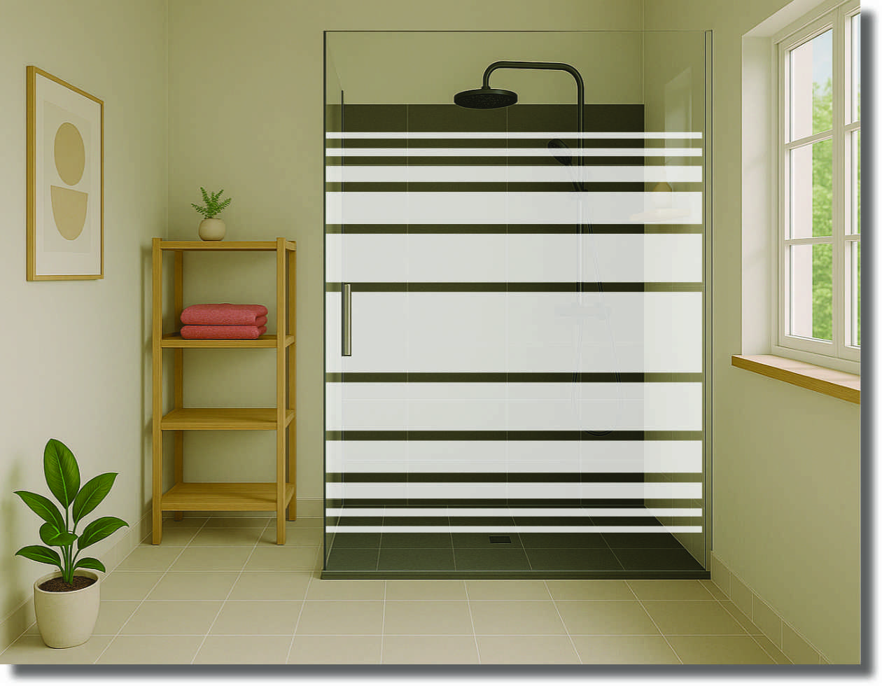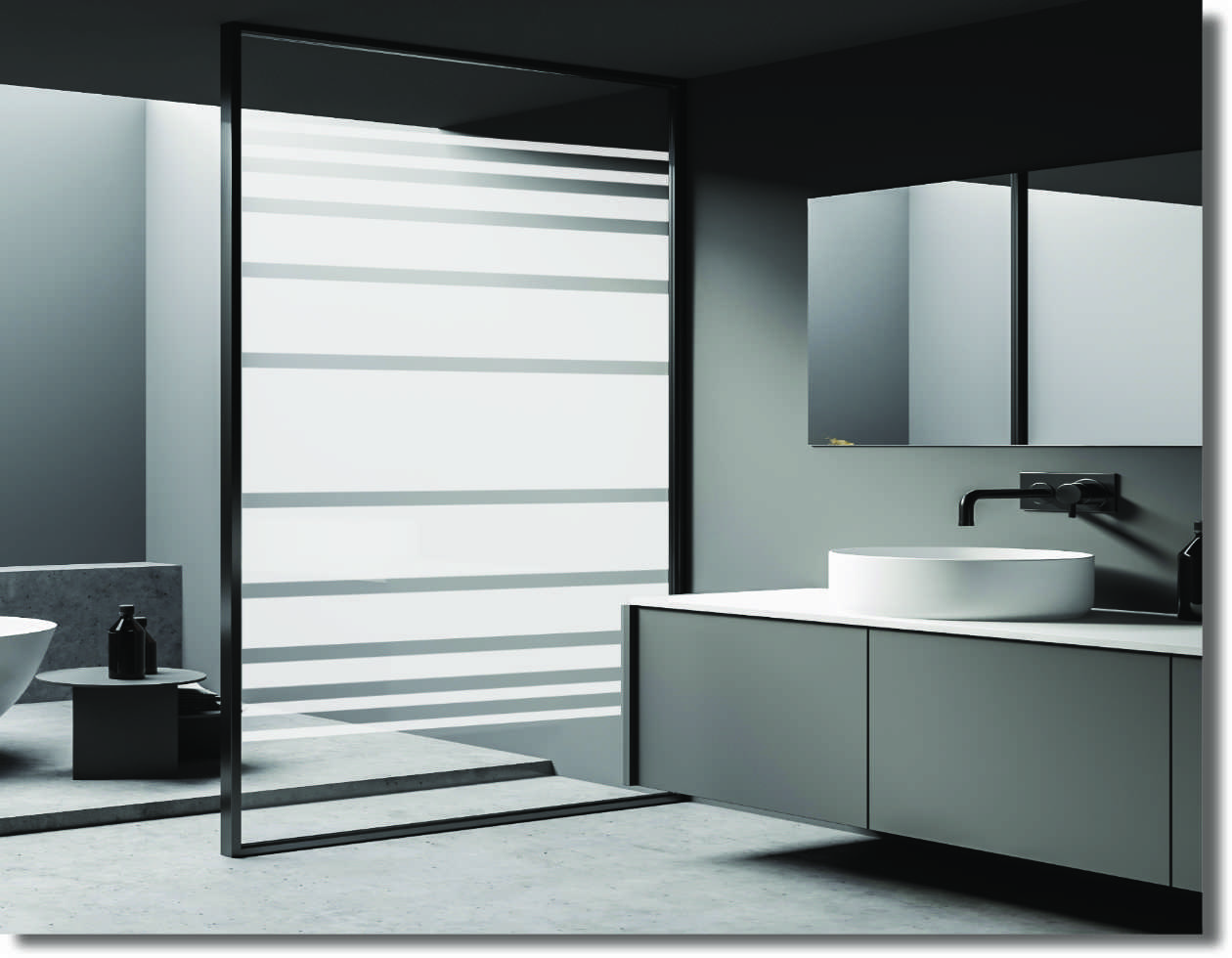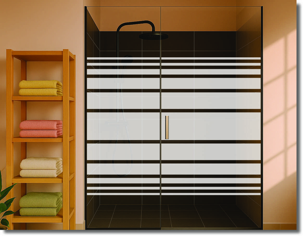 Startseite » Fenster- & Glasfolien - Standard Maß » Duschdekorfolie „Kontraststreifen“ – moderner Sichtschutz